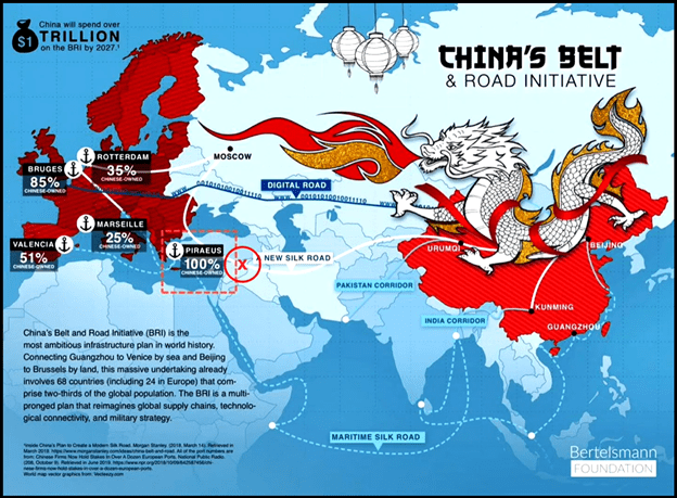 Ever heard of China’s Belt and Road Initiative? Google it. It’s not a conspiracy by any means – it’s China articulating their long-term economic growth plans. China is seeking to re-invigorate the old Silk Road, which goes from Sheng-hi to Europe… across the Euphrates and through Israel. (Boris Johnson is a supporter of it.) China is trying to “acquire” the land and build a “road”. They do it by offering high-dollar infrastructure projects, with money put up by Beijing, against collateral such as seaports or railway lines. When these developing nations can’t pay for the projects, China exercises their right to “reclaim” their money through access to the infrastructure they built or seaports the host country had put up as collateral.