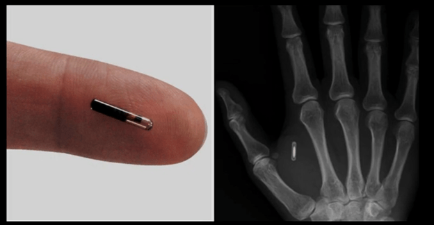 For a good 40-minute explanation, click here. The actual verses in Revelation identify it as “a mark on [the] right hand or on [the] forehead, and that no one may buy or sell except one who has the mark or the name of the beast, or the number of his name. Here is wisdom. Let him who has understanding calculate the number of the beast, for it is the number of a man: His number is 666.”