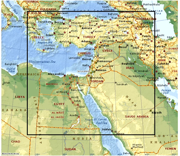 John also receives the dimensions of the New Jerusalem – a cube, 1,400 miles on each side. For reference, here’s what it would look like with the current Jerusalem at the center: